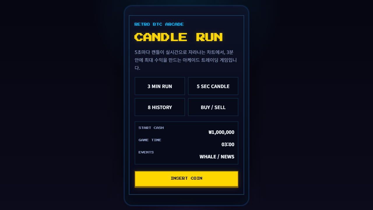 레트로 아케이드 스타일 코인 트레이딩 미니게임
